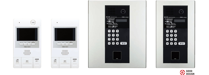 居室親機は、大幅なスリム化を実現(同社従来機比)し、モニターは3.5型にサイズアップ。デザイン性を高めつつ、使いやすさにも配慮した”すっきりスリムデザイン”を実現しています。マンションの顔ともいえる集合玄関機は、シルバーとブラックを基調とした高級感あるデザインに一新され、サイズも大きく窪みがついた押しやすいボタンなど ユーザーの使いやすさにも配慮されています。